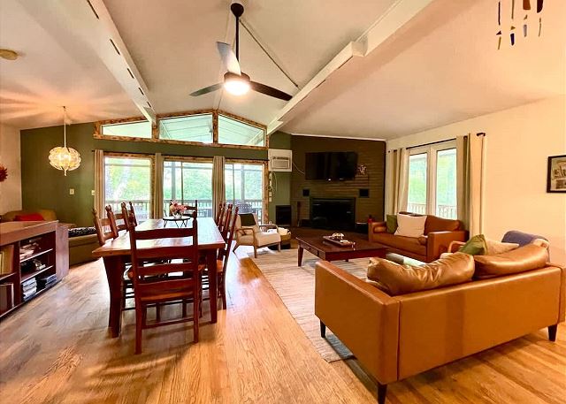 child bed, combination tub/shower, king, queen, shower, toilet, tub, twin/ single, autumn foliage, churches, cinemas, festivals, forests, library, museums, playground, restaurants, winery tours, Child's Highchair, Dining, Books, Games, Music Library, Stereo, Television, Toys, Books for Kids, Smart TV, Air Conditioning, Clothes Dryer, Fireplace, Hair Dryer, Heating, Internet, Iron & Board, Linens Provided, Living Room, Parking, Towels Provided, Washing Machine, Fire pit, Shampoo & conditioner, Wifi, Free Wifi, Travel Crib, Coffee Maker, Dishes & Utensils, Dishwasher, Kitchen, Microwave, Oven, Refrigerator, Stove, Toaster, Dining Table, Dishes & Utensils for Kids, antiquing, bird watching, gambling casinos, horseback riding, horseshoes, photography, scenic drives, sight seeing, sledding, walking, ATM/bank, groceries, hospital, laundromat, massage therapist, medical services, Mountain, Mountain View, Rural, Deck / Patio, Lawn / Garden, Outdoor Grill, Tennis, Outdoor Play Area, Communal Pool, Hot Tub, basketball court, fishing, hiking, skiing, swimming, tennis, children welcome, pets considered, Events Allowed, Long-term Renters Welcome, Minimum Age Limit for Renters, Weddings, flexible, monday, saturday, sunday, friday, thursday, tuesday, wednesday, recommended, Dining Area, Dining Room, Family, Outdoor lighting, Smoke detectors, Fire extinguisher, First aid kit, Emergency exit route, Emergency phone number: Medical, Emergency phone number: Police, Emergency phone number: Fire, Enhanced cleaning practices, Clean with disinfectant, No-contact check-in and check-out, High touch surfaces cleaned with disinfectant, Towels and bedding washed in water that's at least 60sC/140sF