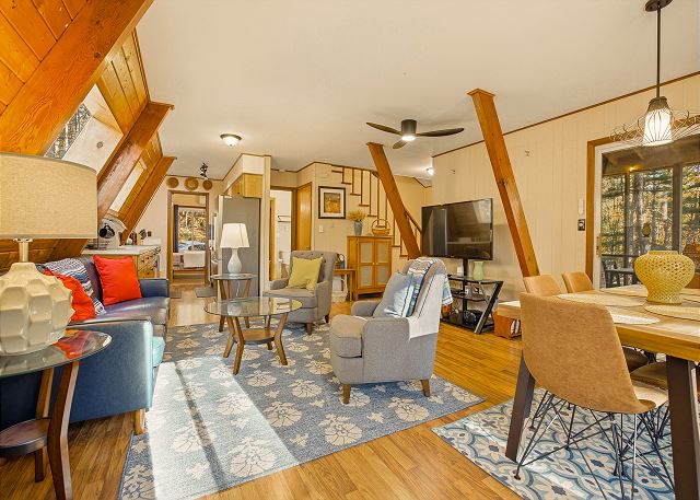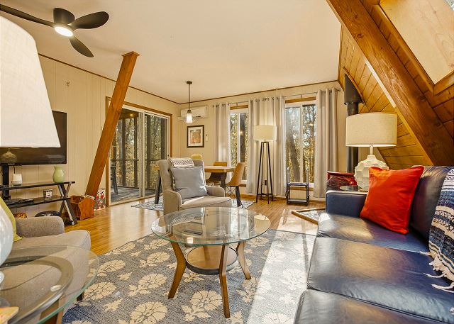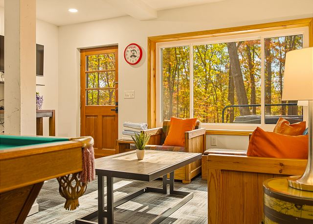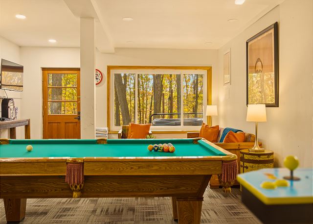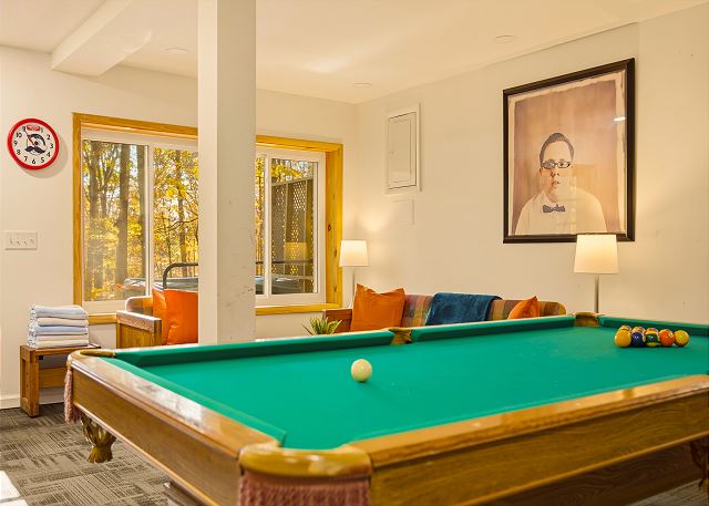 combination tub/shower, king, queen, shower, toilet, tub, twin/ single, autumn foliage, churches, cinemas, festivals, library, museums, playground, restaurants, winery tours, Dining, Books, DVD Player, Game Room, Games, Pool Table, Stereo, Television, Video Games, Books for Kids, Smart TV, Air Conditioning, Clothes Dryer, Fireplace, Hair Dryer, Heating, Internet, Linens Provided, Living Room, Parking, Towels Provided, Washing Machine, Wood Stove, Fire pit, Shampoo & conditioner, Desk, Wifi, Free Wifi, Coffee Maker, Dishes & Utensils, Dishwasher, Ice Maker, Kitchen, Microwave, Oven, Refrigerator, Stove, Toaster, Dining Table, antiquing, bird watching, gambling casinos, horseback riding, paddle boating, photography, scenic drives, sight seeing, sledding, walking, ATM/bank, fitness center, groceries, hospital, laundromat, massage therapist, medical services, Mountain, Mountain View, Rural, Deck / Patio, Outdoor Grill, Communal Pool, Hot Tub, basketball court, cycling, fishing, hiking, mountain biking, rafting, skiing, swimming, tennis, children welcome, pets considered, Events Allowed, Minimum Age Limit for Renters, flexible, monday, negotiable, saturday, sunday, friday, thursday, tuesday, wednesday, recommended, Dining Area, Dining Room, Adventure, Away From It All, Family, Romantic, Outdoor lighting, Smoke detectors, Carbon monoxide detector, Fire extinguisher, First aid kit, Emergency phone number: Medical, Emergency phone number: Police, Emergency phone number: Fire, Enhanced cleaning practices, Clean with disinfectant, No-contact check-in and check-out, High touch surfaces cleaned with disinfectant, Towels and bedding washed in water that's at least 60sC/140sF